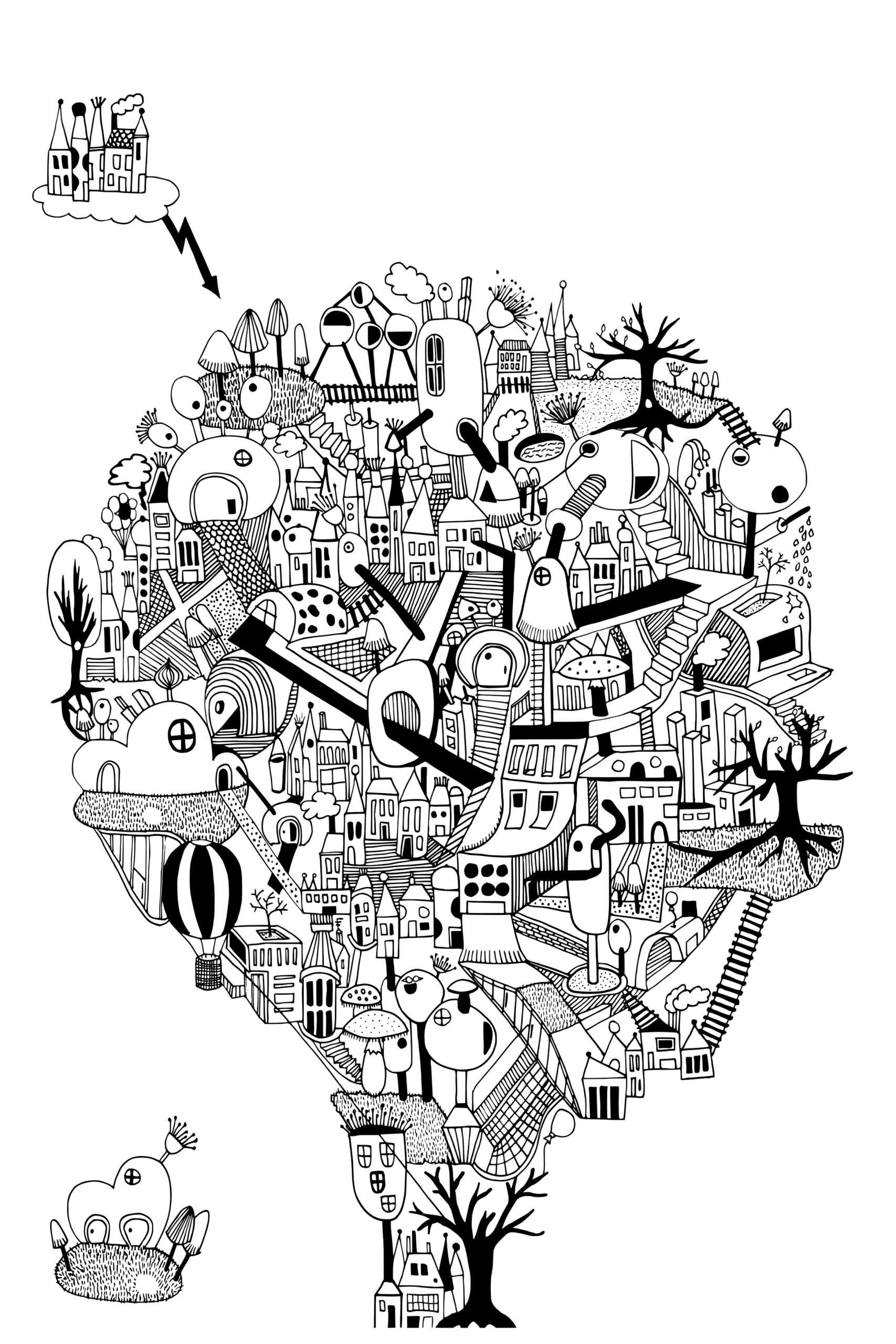 Art print – Nora Rittmüller – Fantasy tree / Black on white