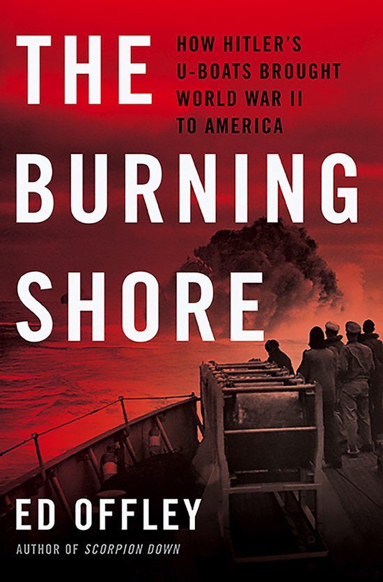 Op 15 juni 1942, terwijl duizenden vakantiegangers in de zon lagen op Virginia Beach, barstten vlak voor de kust twee enorme vuurballen los van een konvooi olietankers dat Chesapeake Bay binnenvoer. Terwijl mannen, vrouwen en kinderen vanaf de kust toekeken, vielen twee beschadigde olietankers uit de lijn en begonnen te zinken. Toen ontplofte een klein escorteschip in een hevige explosie. Oorlogsschepen en vliegtuigen van de marine bestookten het water met dieptebommen, maar het mocht niet baten. Binnen de volgende vierentwintig uur lag een vierde schip op de bodem van het kanaal – allemaal slachtoffers van de negenentwintigjarige Kapitänleutnant Horst Degen en zijn bemanning aan boord van de Duitse U-boot U-701. In The Burning Shore presenteert de veelgeprezen militair verslaggever Ed Offley een spannend verslag van het bloedige U-boot offensief langs de oostkust van Amerika in de eerste helft van 1942. Hij gebruikt het verhaal van Degen’s drie oorlogspatrouilles als een lens om dit vergeten hoofdstuk van de Tweede Wereldoorlog te bekijken. Zes maanden lang doken Duitse U-boten op in de wateren voor de oostkust, brachten ongestraft koopvaardijschepen tot zinken en dreigden de bevoorradingslijn van Amerika naar Groot-Brittannië te verbreken. Degens succesvolle infiltratie in de Chesapeake Bay midden juni maakte het succes van de U-boten duidelijk en zijn spectaculaire aanval joeg het Amerikaanse publiek angst aan als nooit tevoren. Maar Degens cruise werd minder dan een maand later onderbroken toen luitenant Harry J. Kane van de Amerikaanse luchtmacht en zijn vliegtuigbemanning het silhouet van U-701 voor de kust zagen. De daaropvolgende botsing betekende een kritiek keerpunt in de Slag om de Atlantische Oceaan en vormde de basis voor een onwaarschijnlijke vriendschap tussen twee overlevenden van de episode.